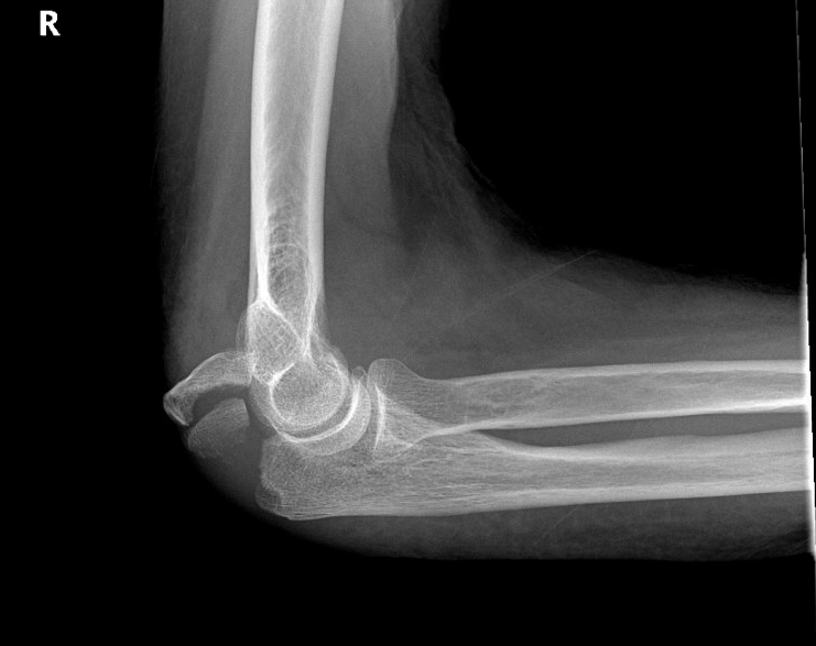 This a “displaced” fracture of the olecranon at the elbow.